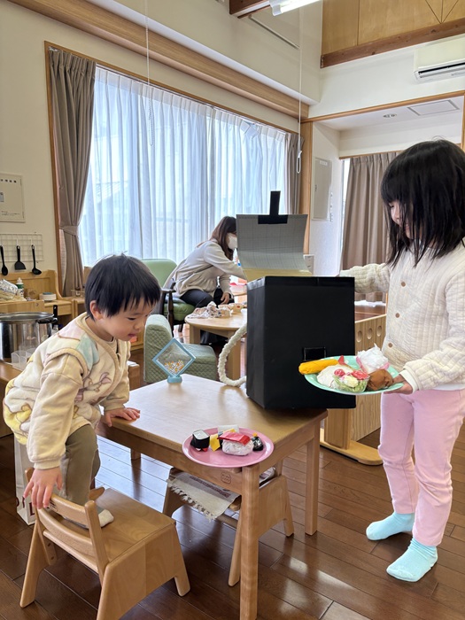 この日は、こども園から持ってきたお店屋さんごっこの商品を、5歳児さんが売ってくれました。