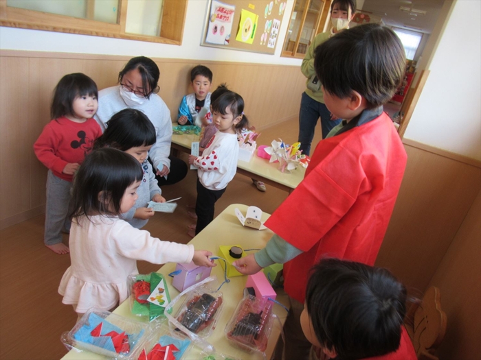 空き箱や、おままごとの玩具を使ったお店屋さんを計画しています。